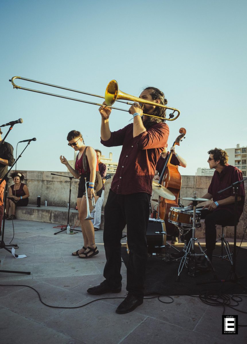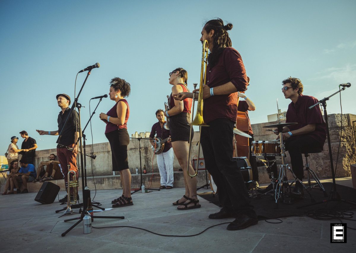En cette chaude soirée de juillet, le lumineux groupe combo Marie Carnage irradiait de swing sur les remparts de la Citadelle de Marseille. Ils jouaient en première partie de Tigran Hamasyan pour cette soirée Marseille Jazz des Cinq Continents.