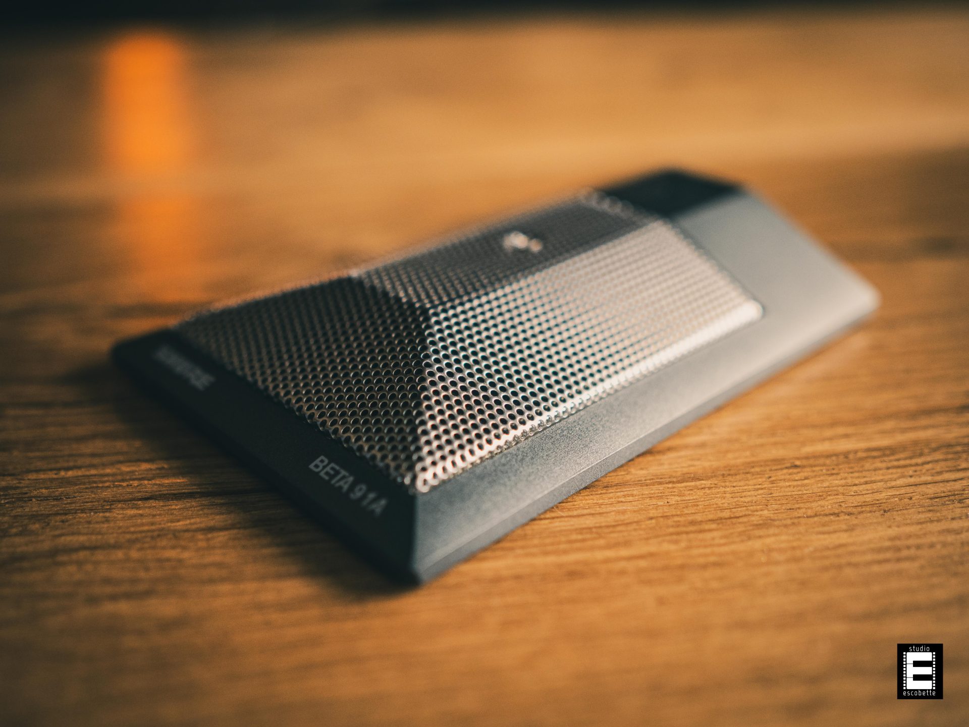 Pour finir cette petite série d’acquisition, un classique a rejoint les rangs : le micro de surface Shure Beta 91A. Avec sa directivité semi-cardioïde (il enregistre dans un « demi-plan ») ce micro a plusieurs usages : posé dans le piano ou scotché à l’intérieur du lid, il permet une prise de son au plus près des cordes en limitant la repisse des instruments proches. Il permet aussi des prises sur une grosse caisse, un cajón. Equipé d’un préampli intégré il a été conçu pour capter particulièrement bien les basses.