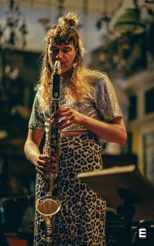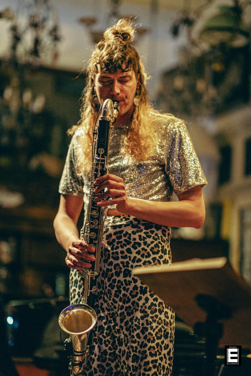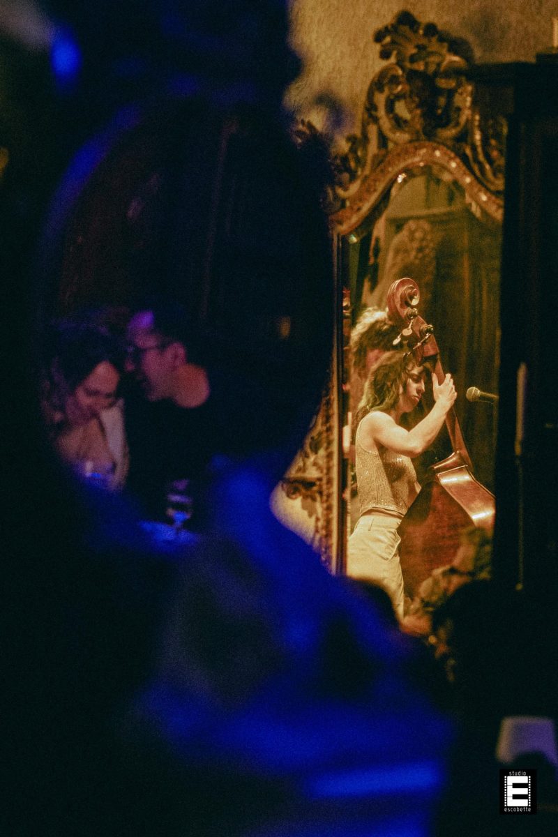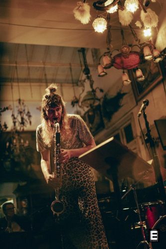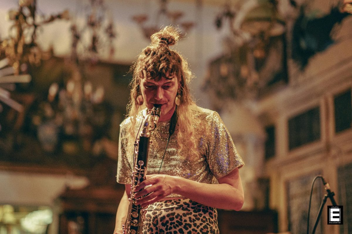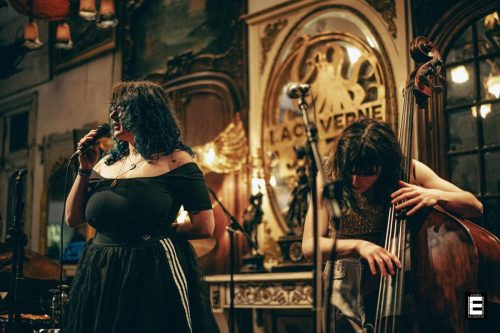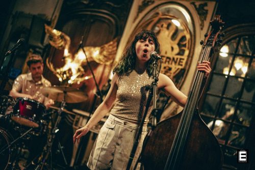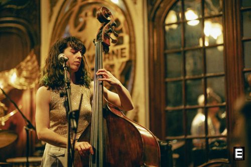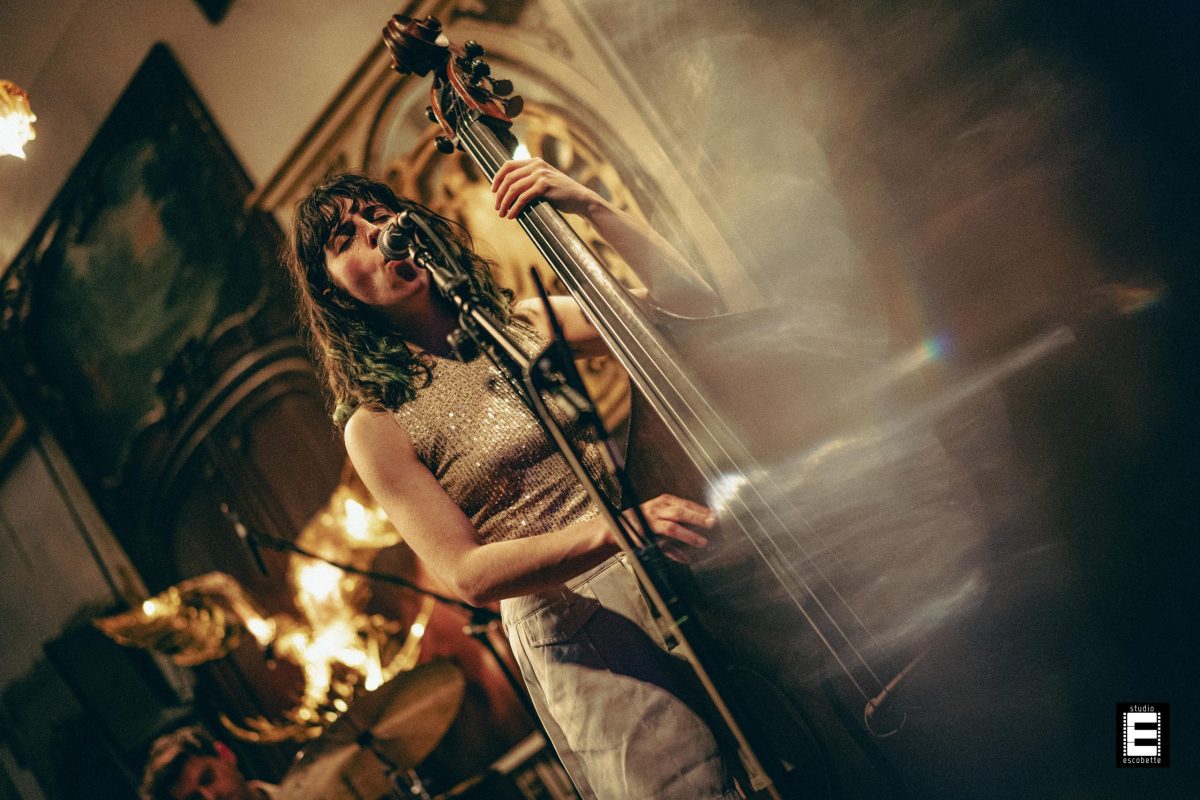 Knobil, sa contrebasse déjantée et ses cheveux bleus étaient à la Caverne Jazz où les antiquités ont vibré d’une musique avant-gardiste, engagée et non dénuée d’humour.