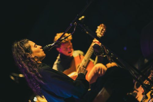 Climène Zarkan, voix magnétique, compositrice intuitive, et Baptiste Ferrandis, guitariste raffiné à l’écriture poétique tissent ensemble une musique profondément humaine, nourrie d’influences multiples — musiques traditionnelles, jazz, poésie sonore — tournée vers l’intime et le sensible.